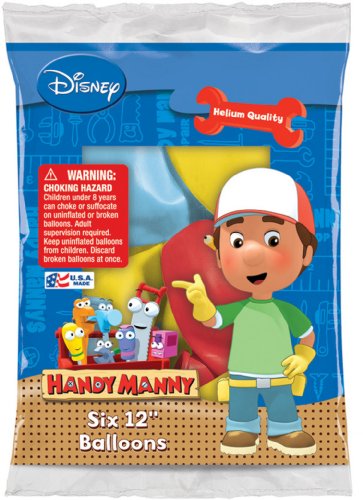 Helium Quality Disney? Handy MannyLatex Balloons6 Individual Packages of 6 Ct. 12" Latex Balloons (36 Total Balloons)High quality two sided printingPerfect party coordinate for any child's theme partyProudly made in the USADisney Handy Manny 12" Assorted Color Balloons