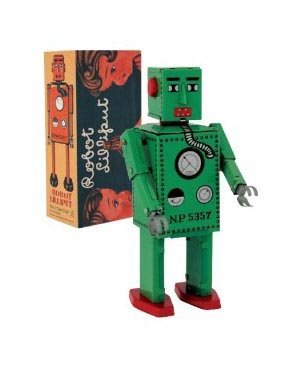 Wind up ? Originally made by K.T. Japan circa 1940s ? Arms sway ? Assorted colors, all shown. Each sold seperately. 6 1/2" Small Lilliput Robot Tin Toy by Schylling Toys